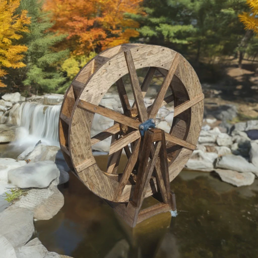 Enjoy the healing effect of a revolving wooden water wheel and the serene sound of water in your garden. Handcrafted in the USA by a fourth-generation boat builder using traditional boat-building techniques, our exclusive intertwined construction leaves no joinery gaps, requires minimal hardware, and produces a well-balanced, long-lasting water wheel that revolves smoothly on a ball-bearing shaft with minimal water flow.